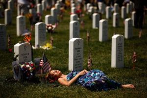 The young woman isn’t identified in the photo credits. Perhaps the photographer, Chip Somodevilla/Getty Images didn’t ask. It would take a ballsy person to stroll up to such a scene and play 20 questions though I imagine he’d have gotten chapter verse and the annotated notes if he had.The grave belongs to U.S. Marine Corps Lance Corporal Noah Pier. He was killed February 12, 2010 in Marja, Afghanistan and is resting at Arlington National Cemetery in Virginia, which is just outside the capital.