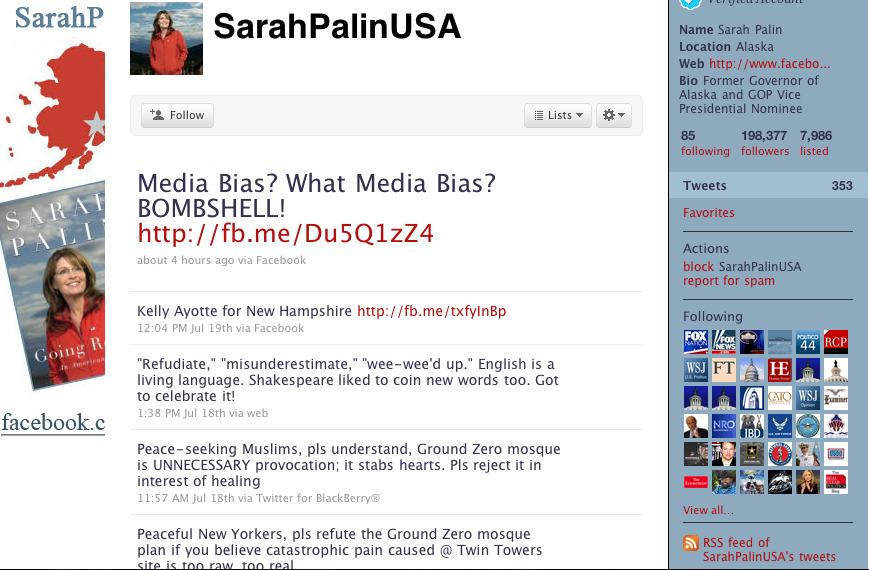 Sarah Palin committed a bush in a recent Twitter battle cry to New Yorkers calling them to “refudiate” plans to build a mosque close to the 9/11 site.