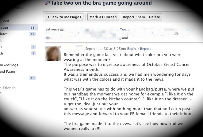 Would men pass around a super double-secret FB message instructing each other to leave a cryptic status update?